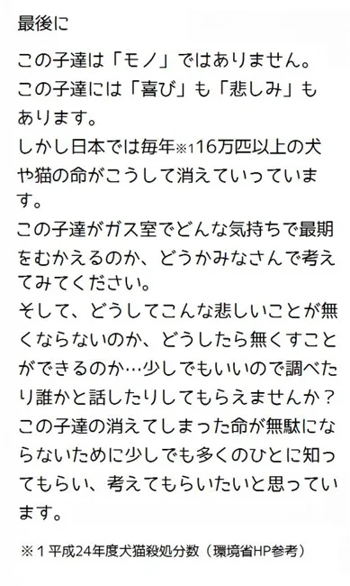 一度人間と共に生活をしてしまった動物や人間によって手を加えられた動物はもはや野生ではありません。彼らも1人では生きていけないんです。